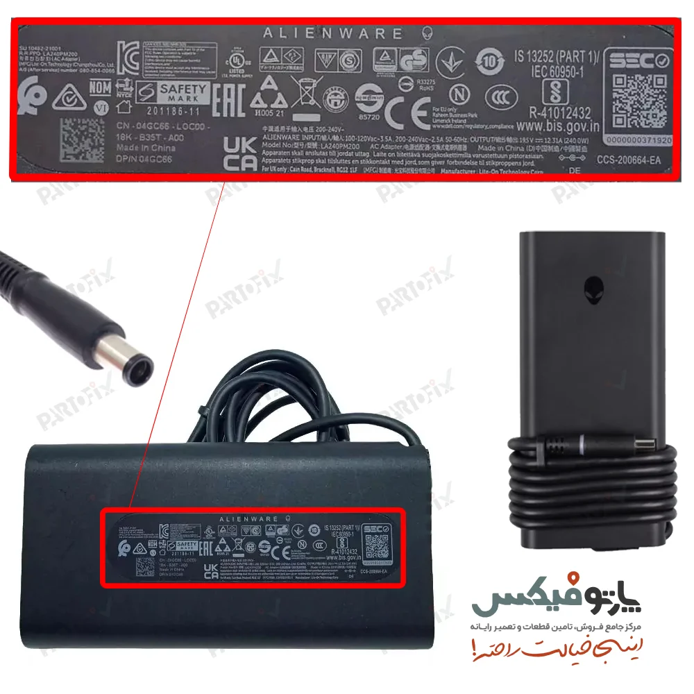 مشخصات شارژر اورجینال لپ تاپ دل 19.5 ولت 12.31 آمپر کانکتور 5.0 * 7.4